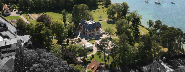 La parcelle de la Fondation Brocher s’étend sur près de trois hectares au bord du lac Léman à Hermance, près de Genève. Faisant également face aux cimes du Jura, le Centre Brocher est un havre de paix. A ce titre, il offre un cadre idéal pour des retraites et des rencontres scientifiques de pointe. Le parc arboré, tilleuls, marronniers, tulipiers, érables ou encore pins sapo, est une source d’inspiration inépuisable et une étendue propice à la réflexion. La gloriette et ses colonnes doriques - pavillon surplombant le Léman - représente un lieu paisible, bercé par les vagues.